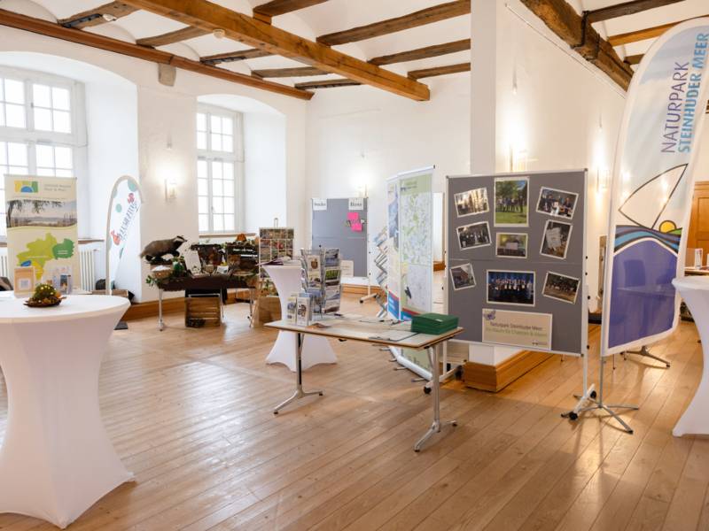 Vor und nach dem offiziellen Programm sowie in den Pausen wurde auf dem „Marktplatz“ viel genetztwerkt. Hier präsentierten sich Naturpark-Partner und Fördermittelgeber.
